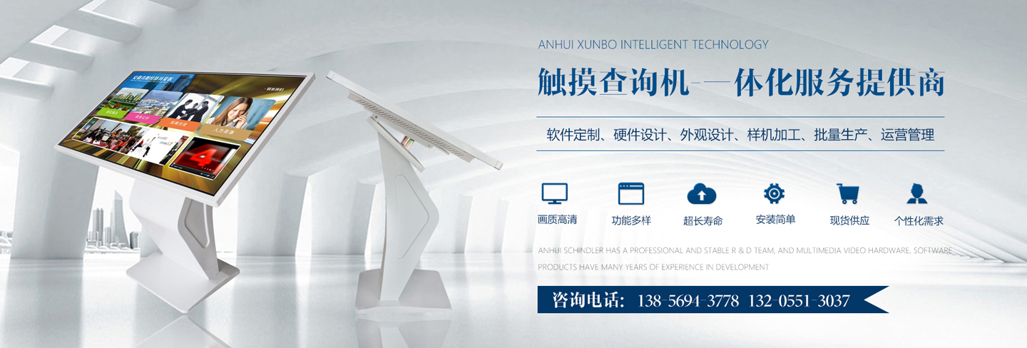 迅博智能 位于中國科教城---合肥市,和經(jīng)濟(jì)開發(fā)區(qū)與高新區(qū)毗鄰,地址合肥市肥西縣湯口路與皋城路交口人民萬福產(chǎn)業(yè)園一期12棟東側(cè),是一家IT領(lǐng)域的高新技術(shù)企業(yè),全心全意服務(wù)于信息化建設(shè),做專業(yè)的信息化提供商,全力打造信息時(shí)代新模式。 迅博智能 主要從事觸摸屏、觸摸顯示器、OLED柔性觸摸屏、觸摸查詢一體機(jī)系列產(chǎn)品及觸摸顯示互動(dòng)體驗(yàn)軟硬件產(chǎn)品;智能排隊(duì)叫號、網(wǎng)上預(yù)約排隊(duì)叫號、安康碼皖事通取號系統(tǒng);曲面屏、OLED 屏幕、柔性屏、LCD液晶大屏拼接系統(tǒng);落地式、壁掛式單機(jī)版網(wǎng)絡(luò)版室內(nèi)外廣告機(jī)及數(shù)字標(biāo)牌廣告信息發(fā)布系統(tǒng);室內(nèi)外LED電子格柵透明屏、單雙色、全彩電子大屏;各類辦事營業(yè)廳:公積金...